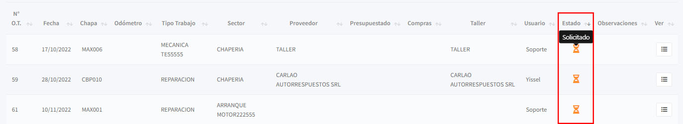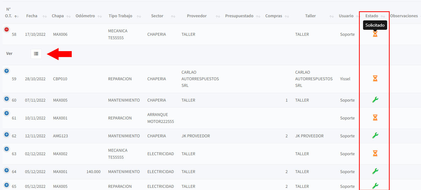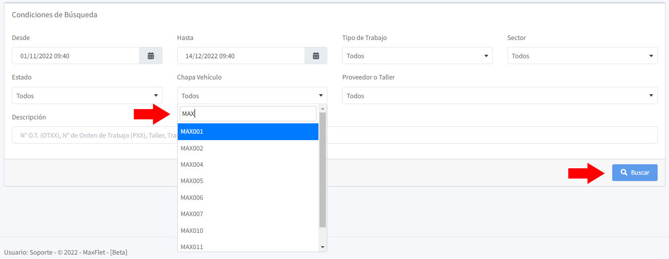 Para localizar tu OT, puede buscar por chapa, tipo de trabajo, sector, estado o proveedor según sus necesidades.