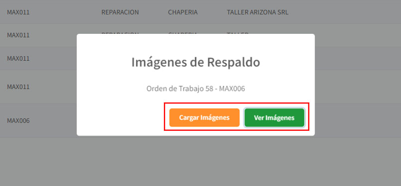 En Ver ≡ opción IMÁGENES, es posible visualizar o agregar una imagen a la Orden de Trabajo.