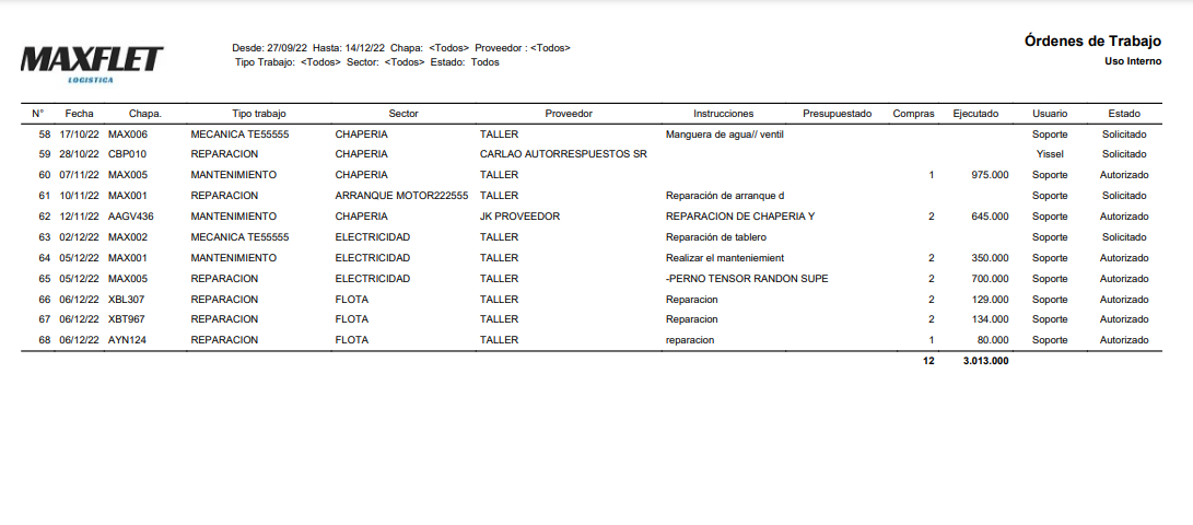 En el Estado 6: En este estado LIQUIDADO, se encuentran todos los trabajos concluidos, incluyendo las revisiones y las cargas de facturas de compra de repuestos, mano de obra, entre otros. Se recomienda realizar la liquidación cuando se haya confirmado el 100% de todos los aspectos mencionados.