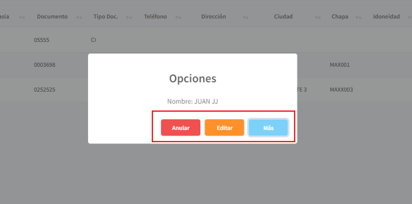 Tendremos tres opciones: Anular, Editar y ver Más (ver, cargar imágenes o ver detalles)
