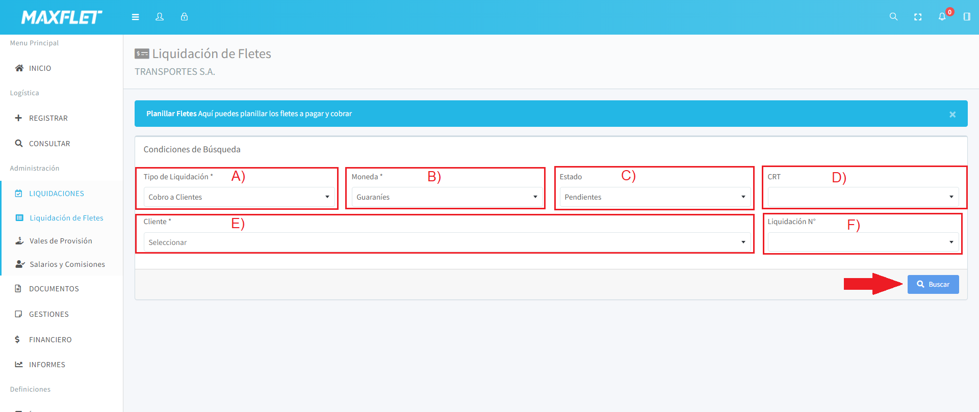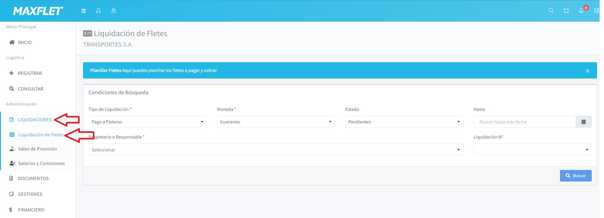 Dentro del menú Liquidaciones elige la opción Liquidación de Flete.