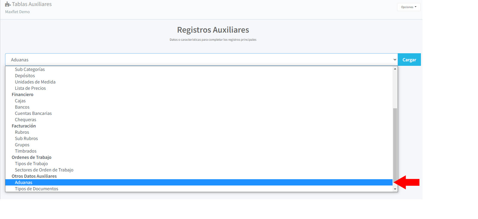 En Otros Datos Auxiliares seleccionamos Aduanas