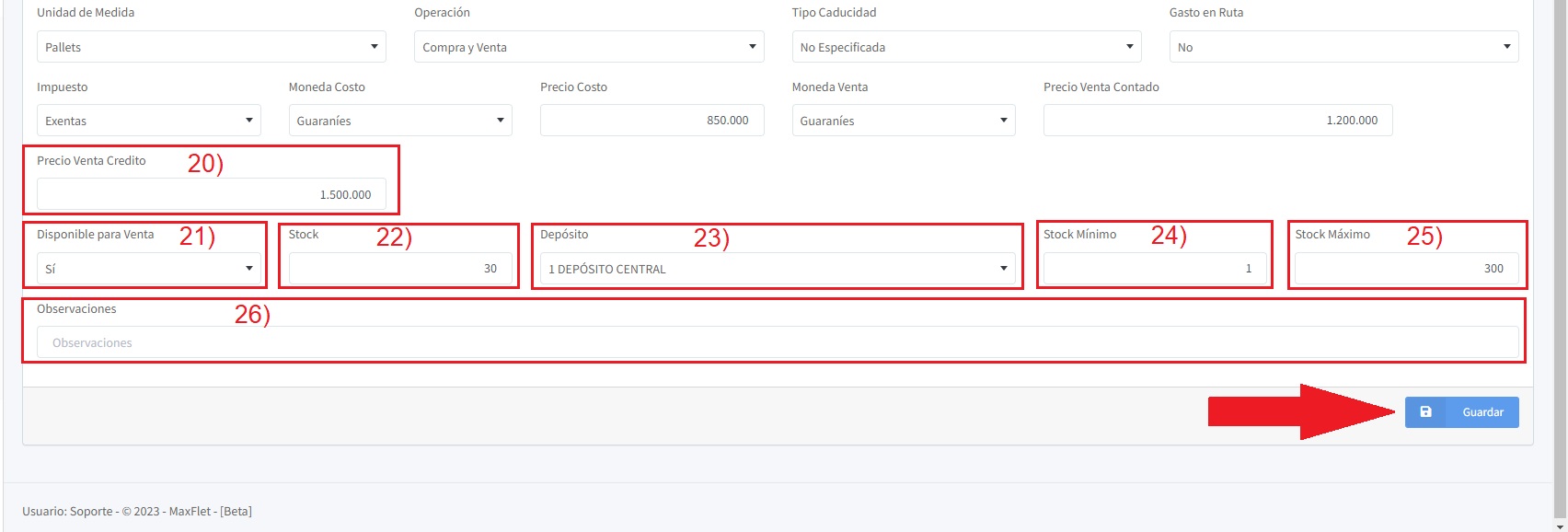 22) En el campo stock: Escribe la cantidad que tenemos en el stock inicial del artículo.