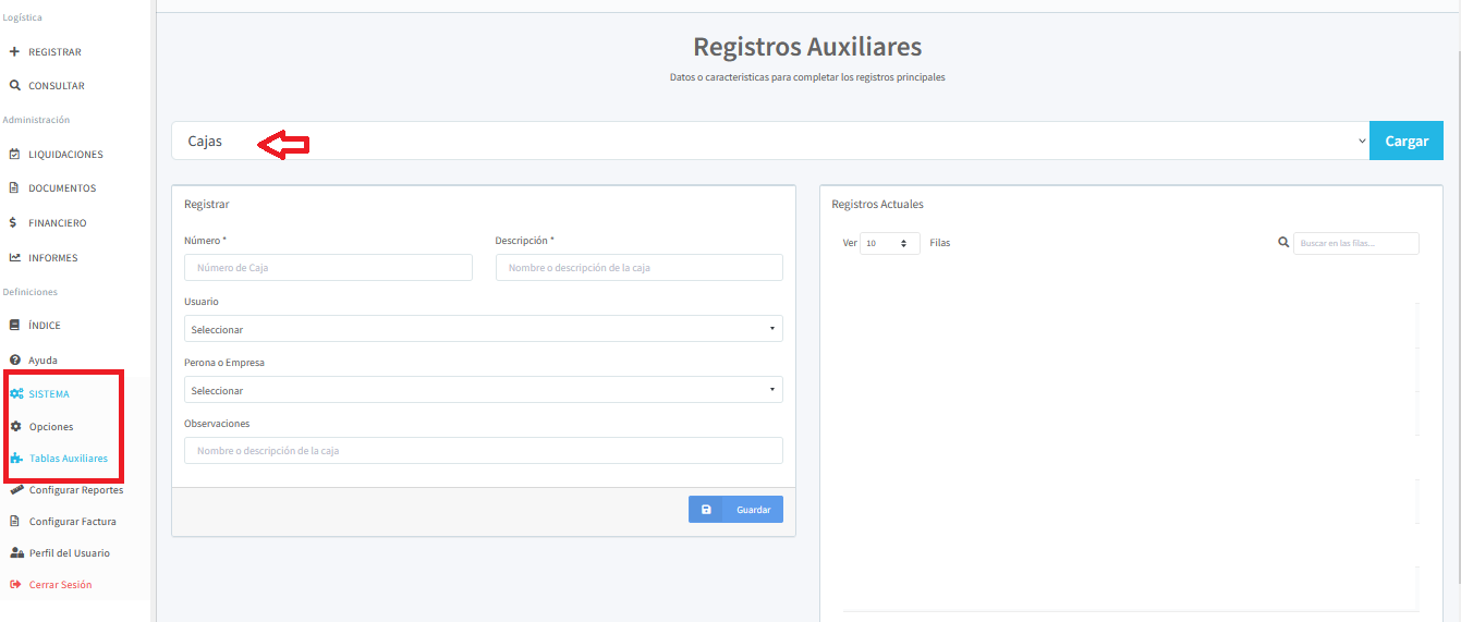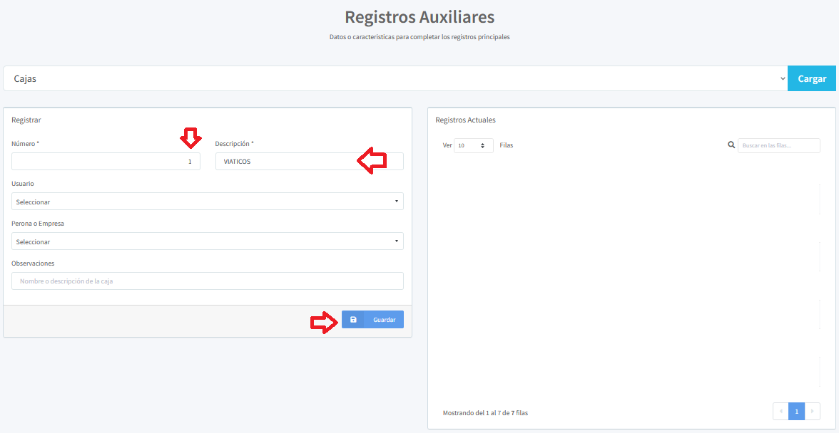 Para el registro de la caja agregamos el numero de caja y el nombre, podemos vincular la caja a un usuario en especifico, persona o empresa. Para guardar clicamos en el botón "Guardar" y listo!.
