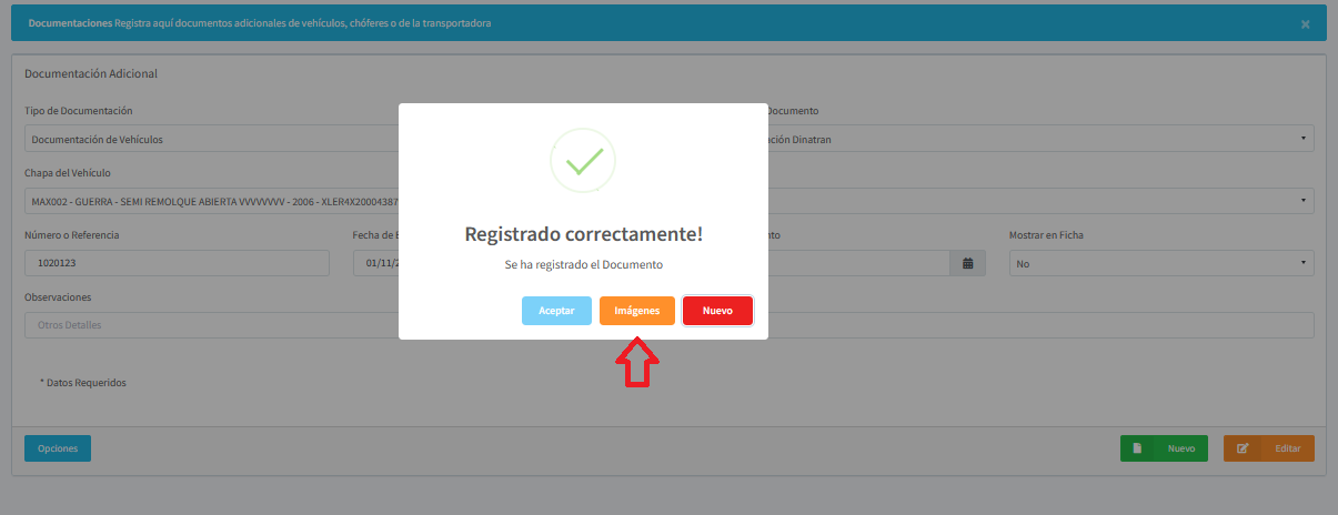 Una vez hayas guardado el documento, Te saldrá la opción de agregar fotos de respaldo o adjuntar imágenes relacionadas con el documento registrado. Para hacerlo.