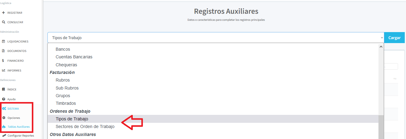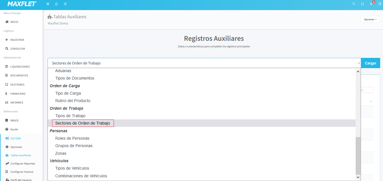 >Para registrar un sector de la Orden de Trabajo seleccionamos de la lista Sectores de Orden de Trabajo