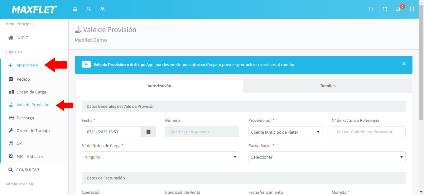 Para registrar el Vale de Provisión de manera correcta, es necesario completar 2 procesos: